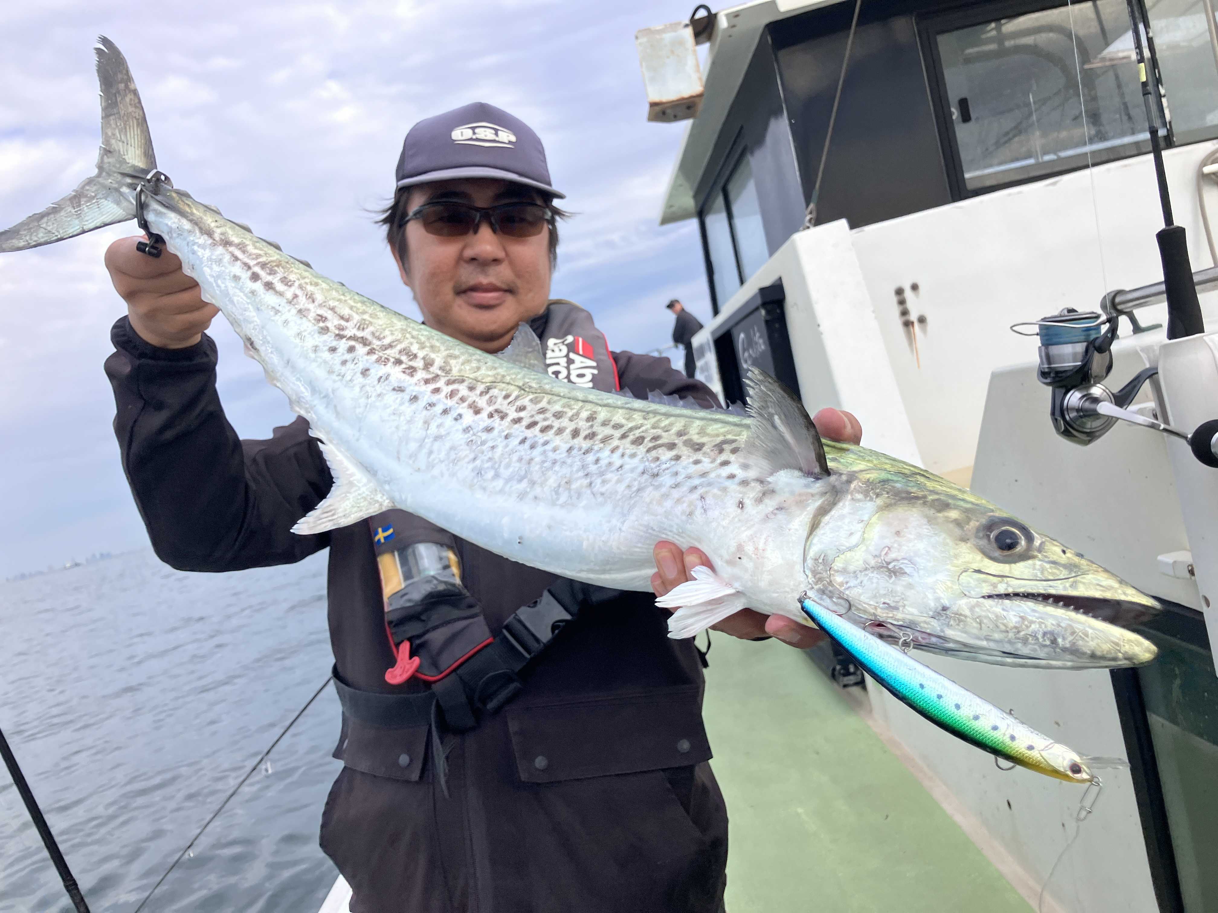 今日もデカイの狙いで行ってきました! 朝のナブラ打ちタイムはデカイのガサンガサンやってるの見えるのですが間に合わず..間に合えば大チャンスになりそうなの2回ほど有りましたが良いタイミングで当てられずノーチャンスでした。悔しぃ~! 天気が良く明るくなるのが早かったせいか鳥も早い時間に引けてしまいウロウロ捜索。単発のハネ出だしますが広範囲に散発的でなかなか狙いを絞れず。でしたが、何発かまとまって跳ねた潮目に行くと数名にアタリ有り!2ヒットしますが1個は即バレ、もう1匹は後ちょっとのところでラインブレイク(泣)デカそうでした。もったいない。PEラインは2号でやってください!モンスターサイズ居るのでお願いします! ハネも無くなりふらふら浮き待ちしてるとガサガサぐるんぐるんの洗濯機ナブラ発見!タイミング良く当てられて何人掛かるかワクワクでしたが、これも沈み早く1キャッチだけ~ 後半はうろうろ探して単発のハネから流したり、浮いたベイト反応やったりでサワラサイズはなんとか3匹追加できました。今日はチャンスになりそうでモノにできなかったり、大チャンスぅ~と思ったらアレ?って感じで数伸ばせませんでした。明日もデカイの狙いで頑張って探します。もう1回書いときますPEラインは2号を使ってください。ドラグセッティングは2kgでお願いします。