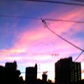 会社の2階へ上がる階段の踊り場から、山に沈む夕日とその横を真っ白な飛行機雲が横切っていて、すごくキレイでした。思わず携帯で写真を撮ろう!!と思ったのですが・・・、今会社は外壁の塗装工事をしていて、足場とその周りを薄い布で覆われていて、きれいな写真を撮ることができませんでした。。。
