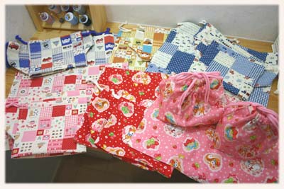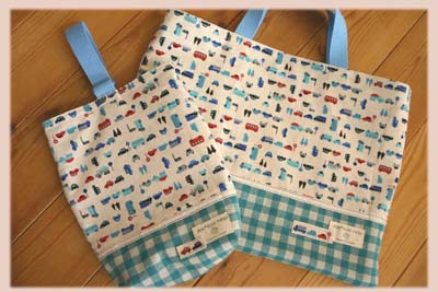 こんばんは~今日は次女が通う幼稚園の参観日でした。週に1回、縦割り保育の日があり、今日は縦割りでの参観でした。今年度は新型インフルエンザの影響でことごとく行事が中止になり、久しぶりの参観日でしたでも、本当は今日は餅つきがある予定だったのですが、早々と中止が決定してしまい、とーっても残念でした餅つき、私も次女も楽しみにしていたのになぁ・・・さて・・・明日は幼稚園の1日入園になっていて、ハンドメイド好きの3人でフリマ出店を予定しています。新入園児ちゃんのために入園グッズを中心に販売予定で、最後の作品を午後から仕上げました。リネン&コットンの生地で通園バッグと上履き入れを。いつもの通り、強度を増すために接着芯を貼っています。 時間があればお揃いのランチセットも作りたかったのですが、タグ付けもしていなかったので時間切れでした1ヶ月後には園の発表会があり、その時も出店していいとのことなのですが、ちょっと時間がないことや、ほかのショップの納品分も作らないといけないので、次回は見送りしようかどうしようかと悩んでいるところですうーん・・・ 今回使用したくるま柄チロリアンテープなどの男の子用セット今日も読んでいただきましてありがとうございました。クリックしていただけると励みになりますにほんブログ村にほんブログ村 design*yuippie