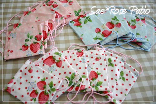 おはようございます今日はどんより曇り空また今日も寒い一日になりそうです。インフルエンザにかかっていた次女。金曜日に発熱し、月曜にはすっかり平熱に。そして昨日から幼稚園へ行くようになりました市内ではインフルエンザが結構流行っているようです。湿度もかなり低いので、インフルエンザだけでなくノロウィルスなども気をつけなきゃ、って思います。次女がインフルにかかったり、自分の用事があったり長女は脚が痛いというので外科へ連れて行ったり・・・と、いろんな用事が入ってきてハンドメイドもなかなか思うように進んでいません委託先のショップさんへは週に多くて2回行くのですが、もう10日も行けてない状況。今日は午後から長女の小学校では授業参観。何となく落ち着かない毎日が続きます。ぼぉーっとする時間が欲しいなぁ。。。先日、途中経過をUPしていたガーゼマスク。おととい完成し、昨日はラッピング作業をしました。 全部で21枚作り、そのうち1枚を長女に。次女に2枚。長女のマスクは、数えたら7,8枚ほどあったのでプラス1枚でいいかな、と。次女の方がほとんどなくて、プラス2枚。また別の柄でも作ろうと思ってます。大きないちご柄で、ちょっと離れていても何の柄かハッキリ。廃盤になっていた商品が今回だけ復活、ということで3色50センチだけ購入しました。でも、もうちょっと買っていてもよかったかなぁ~お客さまからオーダー頂いている通帳ポーチ。指定の色を持っていなくて、先日やっと見つけて注文しました。いくつか作った通帳ポーチより小さく、とのことなのでまたサイズを調整しなきゃいけません。サイズ変更も結構面倒だったり大変ですよね~今からサイズを調整して、作成にとりかかりまぁす。ソーイングpochee special Book「作ってあげたいげんきな通園通学BOOK」使用商品【キルト】おっ...価格:672円(税込、送料別)クラフトナビオリジナル♪【50cmカット】ハローキティWガーゼ★41250695価格:735円(税込、送料別)今日も読んでいただきまして、ホントにありがとうございましたクリックしていただけると励みになりますにほんブログ村にほんブログ村 design*yuippie