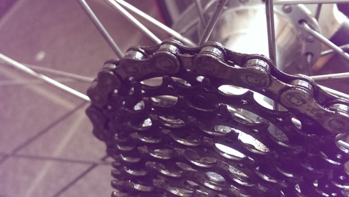 パナチタンで使っているチェーンをミッシングリンク化するので歯飛びするチェーンや手に入れた新品のものなどと長さを比べてみようと。 まずはパナチタンのチェーン デュラエース CN-7700 9速がレースでもメインバイクだったパナチタンか、コルナゴCT 1の時に使って新品交換後物置に15年くらい眠っていたもの チェーンピッチは、何速用か、シマノかカンパかに関わらず1リンク12.7mmらしい。 測定 10リンクで130~135mmというところでしょうか