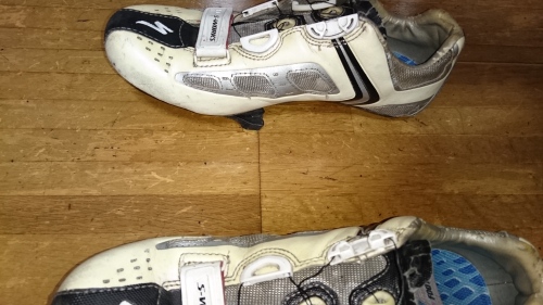 久しぶりに再開したレース参戦で気になったふくらはぎの脚つり富士ヒルクライム栂池ヒルクライム栂池の後にクリートの位置(足入れ)を深く(踵寄りに)動かすことでかなり解消された感じ。足をペダルと直角にするため床板など直角の目印があるところで確認しながらクリート位置決めをしています。スペシャシューズの目盛り一つ分くらい深くこれで練習でもFTP走→登りでつりそうになる感覚があったのがかなり良くなりました。アキレス腱痛の時は結構早めにクリート位置を動かすことで対処した覚えがあったのですが、ふくらはぎの脚つりとクリート位置はすぐには連想できなかったため少し時間がかかりました。これでレースで強度を上げられない原因だったであろう一つは解消できたでしょう。
