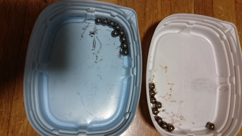 栂池ヒルクライムの後に練習でVXRSに乗ったらなんか引きずるような重さがあるように。片効きの軽量ブレーキがシュー接触を起こしてるのかなと、ギザワッシャー入れてブレーキアウターの長さも変更(長く)。ハンドルきったときのような気もしたのでヘッドの緩みも確認。ついでに試してみようと、手元にあったRD-7900セラミックブーリー、11速チェーンCN-9000と更なる軽量化をテストなのに昨日のライドは後輪に何か挟まっているのかなとライド中に確認する感じ。暑さで身体も重くだらだらライドSTRAVA7/11ライド後にデュラハブ四六組後輪を外してシャフトを指先で回すとかなりざらついて回転重い。指で触ってざらついても乗ってわかることはないだろうと思っていましたが、(原因特定できずとも)違和感として分かったので、整備はしっかりやるべきだなとあらためて。分解すると、ベアリングボール左側は水含んでネズミ色右は茶色これが重さの原因かこのところ雨の中で乗ることもけっこうあったからだなと。クリーナーで掃除すると左はきれいになるが、右は少し変色右は玉押しに少し虫食いらしき跡がもう二十年くらい使っているデュラエースハブですが、ついに虫食いか。練習用なのでまだまだ活躍してほしいとたっぷりグリスアップして整備完了。前回はリチウムグリスでしたが、今回はウレアグリスに前回グリスアップから二年近くたっているのでもっとこまめにグリスアップは必要。まあデュラエースでなければ二十年はとてももたないでしょう。雨でも乗る場合は梅雨時はメンテ時でしょうかAZ ウレアグリース ジャバラ40g [ウレアグリス]価格:174円(税込、送料別)