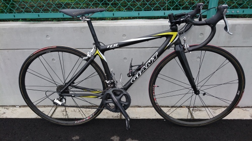 色々組み替えながらこのところ練習や移動でけっこう乗っているジャイアントTCRコンポジットオンセモデルカーボンホイールつけて重量測定したのでメモフレーム GIANT TCR COMPOSITEヘッド 付属品フォーク 付属品ピラー ハープスカンジウムハンドル キャノンデールC1 (芯-芯)430mm(ブラケット部は420くらい)アルミコンパクトステム キャノンデールC2 90mmSTI デュラエースST-7800ブレーキ デュラエース BR-7700サドル アリオネチタンレールFD デュラエース FD-7800直付クランク デュラエースFC-7900 53-39 左アームはFC-R700ペダル デュラエース PD-9000チェーン デュラエース CN-7901+ミッシングリンクRD デュラエース RD-7700SSスプロケ CS-5600 11-25(練習用)ホイール ボントレガーXXXLITEタイヤ ヴィットリア EVOCXこの構成で7.0kgくらい歴代デュラエースミックスになっていますが、使い慣れた部品なので使い勝手はいい。RD-7700は九速用のディレイラーですが、十速で使うのも結構好きで十速用アルテグラよりも好みかも。前変速はクランクが7800以前からずいぶん変化した7900なので色々試しながらクランクアームが左右で違うのは手元にあったものを使用しているだけで特に意図はなく、長さは左右とも170mmこのバイクでレースに出てみてもいいかも重量測定