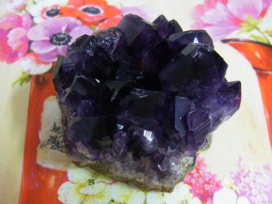 先日、ある天然石ショップに行った時にアメジストドームの深い深い色合いが忘れられなくて、もう一度そのショップに行ってきましたそしたら、そのドームの横に飾ってあったアメジストフラワーとクラスターにも一目惚れしちゃって一瞬どちらにするか迷ったんです。フラワーの方が改運効果が高いのになと思いつつも…(フラワーの方が華やかだった)このアメジストクラスターの方が私を呼んでいるような気がしたので、この子を、お家に連れて帰ることにしましたこの深い深い色。なんて素敵なんでしょうほんと引き込まれますね!あまりに美しすぎてマジマジ見たら…。なんと!ファントムがありました感激虹もあります良かった!このアメジストに決めて以前にアメジストをネット買いして失敗したことがありまして。。。濃い色を求めるなら、実際に見て買う方がいいですねHPでは濃い色のアメジストだったんですが届いたら薄い色でガックリでしたアメジストの神話です。素敵ですね!!今日もアクセスありがとうございました