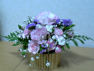 特に趣味がない私・・・そんなのつまらないなぁーなんて思ってた。私に出来ること・・・そうだ!お花だ!結婚するまで、生け花を習っていたことを思い出した。本格的なものから、フラワーアレンジメントまで。『秀月園』という名前までいただいて・・・。これしかない!というわけで早速お花屋さんへ行き、お花をあれこれ選び、生けた作品がコレ!パート1パート2どっちも久しぶりにしては、うまくいったかな?という感じなんだけど。どうでしょう?アレンジの本とか買って、極めたくなってきた。