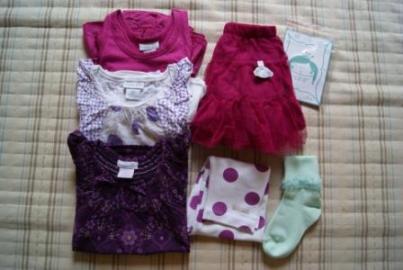 いい加減夏物もいっぱいだと言うのに、お得なsaleに目を瞑れない自分が悲しい特にnaartjieはダメですね…。オーダー 5月16日(現地15日)発 送 5月19日到 着 5月22日 ヤマト運輸 関税なしmoro floral peasant top - WISTERIA - 4jie jie tiered netting overlay skirt - PARROT - 4essentials indo spot pedal pusher leggings - WHT-MAGI - 4oopsy daisy & indo spot tunic - WHT-RAYA - 4necessities long asymmetrical tunic - PARROT - 3netting trimmed fashion socks - DEW - 9-11いままでSummerは青・緑系ばかりだったので紫・濃ピンク系に方向転換(笑)今回どうしても欲しかったのがこちらのtulle skirtです。色を最後までbluebirdと迷いましたが今回紫・濃いpink系に合わせようとParrotに。結果、発色はBluebirdのほうが綺麗だとは思いましたがこちらのほうが少し色味が落ち着いているので普段着に着回せる気がします。sp1で購入したtulle skirt(dew)は内側がニット生地でタイト目でしたがこちらはwoven生地でティアードになっているのでボリュームがある分とっても可愛らしい♪着丈も短めで横広がりなのもいいのかも。こちらのskirtについていたカードは前回のレシピと違いメッセージを書き込めるようになってました。すぐに娘が落書きをしてしまったので内側の画像ありません(笑)asymmetrical tunicは一体どうゆう感じになるのか…ちょっと想像つかなかったんですが、着せると裾がフワッとして着丈が脇より中央の部分が短く見えます。身長が低い分、長くなりすぎるとバランスが悪くなるかと思いワンサイズ下げてサイズ3にしました。oopsy daisy & indo spot tunicはサイズ4です。あとはこんな感じで合わせれるといいかな♪saleになっていたSummer1よりどうしても気になっていた色のWISTERIAでチュニックを購入。とても濃く深い紫色で、個人的にはもう少し柔らかな紫のほうが好みですが手持ちにない分逆に新鮮でした。この色なら、まだ暑さの残る9月でも違和感なく着れそうです。あとはtulleがついた靴下も購入。DEWの色はとても爽やかなペパーミントガムを噛んでいるような色味です♪(なんとなくの雰囲気ですのでお気になさらず…笑)★着画★ちょっと肌寒かったのでWinterの長袖Tと合わせて着てみましたバランスはちょうど良いかなと思います♪これで本当に夏物はおしまいGymboreeのRBSやJanie and JackのSF、MBのEOS、その他naartjieなどのファイナルsaleはサイトを覗かないようにしようと思っていますと言う訳で秋までお洋服お披露目もないので、日記もしばらくはお休みになることと思います(笑)