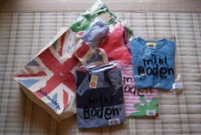 到着レポ Part2♪お腹の成長著しいお兄ちゃん用に水着をmini Bodenより購入ですBoys Bathers 11-12ymini Boden BOYSで昨年欲しいと思っていた水着が春先に一気にサイズ切れしてしまい悔しい思いをしたので早めに買っておくことにしました。で、やっぱりサメsharkインポート物で購入し始めて3年目…歴代サメと比べてみました(笑)左から'08GYM:サイズ8 '09GYM:サイズ10 '10MB:サイズ11-12yこうして比べてみると、Bodenは少しゴワゴワしていてGYMのほうが柔らかな手触りです。BOYSの水着はGymboreeのほうが好みだなぁ~そして念願の・・・Jersey Lined Anorak 3-4ysuzukaレースに着ていくため早めに頼んだのですが、間に合いませんでしたでもみなさんが高く評価しているだけあって、軽くてかばんに入れても嵩張らず重宝しそうですで、ついでに私の分もGraphic T-shirt LBoyfriend Jeans 30L前回とっても気に入ったTシャツの色違いと最近ハマっているBoyfriendjeans♪ジーンズの耳がピンクのパイピングでアクセントになって可愛いboyfriendjeansはユニクロ+Jで一本持ってますがとっても履きやすくワンピやチュニックと合わせてもTシャツと合わせてもサマになるのでかなりヘビロテパンプスと履くとオンナ度です。春夏に向けてブリーチしたのを探していたので、ちょうどいい感じのJp.Bodenで購入してみることに。teensものなので通常のjeansだと入らないと思いますが(笑)、boyfriendタイプなのでなんとか履くことが出来ました早速履いてますよ~♪あと、タンクトップとwomanのTシャツも購入しましたがバックオーダーになってますBoden春夏ものは多分これで買い納め。SummerのTシャツで娘用と兄ちゃん用に欲しいなぁと思う物はありますがどちらもお腹いっぱいです(苦笑)それに夏物はnaaの薄っぺらさがとっても重宝するので予算(あってないようなものですが…笑)はそちらに回すようにします