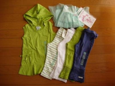 だいぶ前に到着していていまさらですが、記録用に♪Summer1をKKで購入した後に、送料の関係で諦めたtunicドレスやlaceレギをお友達のところで目にしてしまいサイトを覗いたら在庫1!思わずポチッてしまいましたnecessities lace trimmed hooded tunic BUDGIE 3necessities lace trimmed capris BUDGIE 4necessities lace trimmed capris BONNIE 4necessities lace trimmed capris WHITE 4global stripe pedal pusher leggings WHT-BUDG 4jie jie netting overlay skirt DEW 3爽やか色の基本は押さえておきました(笑)BUDGIEサイコ~♪このBUDGIEですがセキセイインコの意だそうで、あの黄緑色なのね~と納得手持ちの昨年のSummerラインにも合います。tunicもフードがついていたり、ポケットのレースが可愛いです♪necessitiesは地味目ですが意外にもとても着回しが利いたりするので大好きです。そして前に購入したtruffleのlaceレギがとてもよかったので追加。色は絞れなかったので3色購入しました(汗)BONNIEはSummer2の色ですがすでにサイトにアップされていて、気になったのとsm1のドレスにも合いそうだったので。サイトで見るよりも落ち着いた綺麗な群青色です。stripeレギもtunicに合わせるつもりでしたが手持ちにGreenが多いせいかどの洋服にも合いそうです(笑)そして、やっぱり気になったtulleスカート♪以前購入してあるおそろいのjiejieTシャツに合わせてLipstickでも良かったのですがこちらのdewのほうがSummerラインと組み合わせが出来そうだったのとLIPSTICKより普段使い出来そうだったので…汗。ウエスト近くにjiejieのfaceマークが付いていてさりげなく可愛い中のスカートがニット系なので履き心地も悪くなさそうです。Summer2でももっとflareなjiejieスカートが出ているので、そのうち購入出来たらなぁ~と目論んでますw★着画★tunic・skirt・leggi ともに今回購入分T-shirtチルプレ・skirt昨年のnaa summer・leggi今回購入分GymboreeのCOFが始まってますね。今回は全く購入予定はなかったのですが…Rewards $5獲得のDMがきていたこともあってセールになったら買おうと思っていたGlamourSafariのスカートに(またもや…汗)お友達のところで拝見してとても可愛かったキリンのteeとその他ちょこっと。あとはお兄ちゃん分がほとんど…と言い訳をしてオーダーしてます。すでに発送されているので来週頭には届きそうです