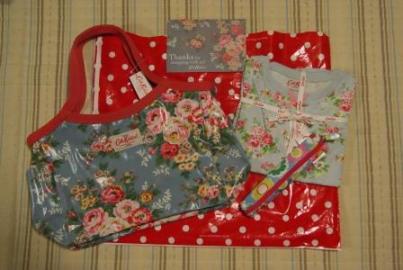 アイスランドの火山噴火で足止めされていたCath♪のお荷物が少し前に届いてますオーダー 4月14日発 送 4月15日(空港封鎖)到 着 4月28日 郵便局 関税なしず~っとBucketBagが欲しいなぁと思っていたので、14日限りの15%オフのDMに飛びついてしましました♪こんな素敵なハガキも同封されてました。オイルクロスの生地なのでこの先に来る梅雨にもってこいです柄は自分で選ぶとグリーンかブルーのドットになってしまうので、娘に選んでもらいました(笑)地がブルーなので爽やかに持てるかと思ってましたが、実際はサイトで見るよりブルー地が効いていて逆に花が目立つためロマンチックテイスト大です。まぁ、たまにはいいかな収納力もけっこうあるし、肩に掛けたときにブラブラ?動かないのでとても持ちやすく軽いし使いやすい。こちらも私の定番になりそうです♪そして昨年着心地がとてもいいらしく娘のお気に入りだったpj♪サイズ的には今年も大丈夫なのですが、サイズアップで購入しておきました。こちらも少しくすんだ薄いブルー地に花柄(笑)そういえばハガキも?Cathの定番でしょうが、わたしの中での一押しなのかもwそして送料枠に収まりそうだったpencaseも自分用に購入…のつもりでしたがやっぱり!!娘に摂られてしまいましたそう言えば以前に購入した娘のMinibagもこのelectricFlowerだった…。失敗したなぁorz4本くらいしか入らないですがbagにちょっと持ち歩くにはこれくらいslimなほうが良さそうです。今回もfabric clothの見本をオーダー。こちらは別送で前日にポストに届きました。とても可愛らしいイチゴ柄♪小さなイチゴの花もあってCathらしくラブリー度満点です前回ヨット柄の見本を取り寄せてオーダーしようとしたら在庫がなく購入できなかったのですが、こちらのstrawberryはまだまだ在庫ありそうなので近いうちにオーダーしてみようと思っています♪++ おまけの着画 ++昨年と同様少し大きいものの着れる範囲かな