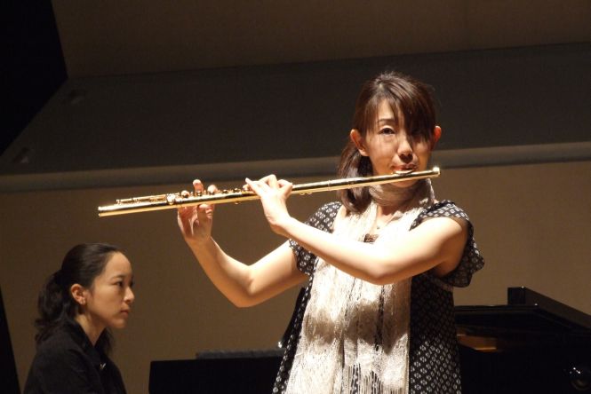~500円でクラシック!~ 東京文化会館モーニングコンサート 上野由恵 フルートリサイタル 2009年4月24日(金) 11:00-12:00(10:30開場) 上野公園・東京文化会館小ホール フルート:上野由恵(第2回東京音楽コンクール木管部門第1位) (第76回日本音楽コンクール第1位) ピアノ:圓井晶子 モーツアルト:ロンド二長調 チャイコフスキー:感傷的なワルツ ラフマニノフ:ヴォカリーズ R・コルサコフ:熊蜂の飛行 バッハ:無伴奏フルートのためのパルティータ BWV.1013 ボンファ:黒いオルフェ ピアソラ:タンゴの歴史 よりプーランク:フルート・ソナタ アンコール~追憶 リハーサル画像本番画像楽屋で満員のお客様がお見えになり、素敵なコンサートになりました。 遠くは京都、茨城県などからも聴きに来てました。