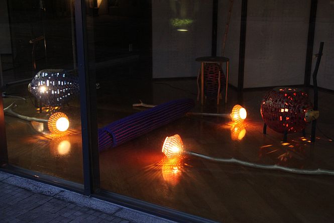 ウインドゥに点灯されていた照明器具仙川アヴェニュー北プラザで(2010.9.1)