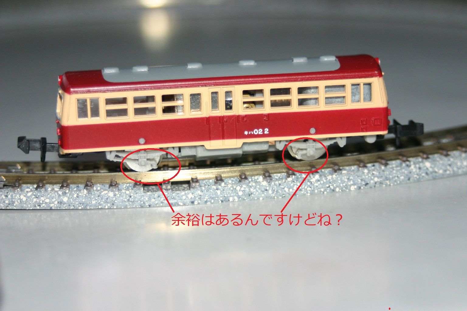 その後試験走行してみるとキハ01形やキハ02形復刻版もスムースに走行できます。