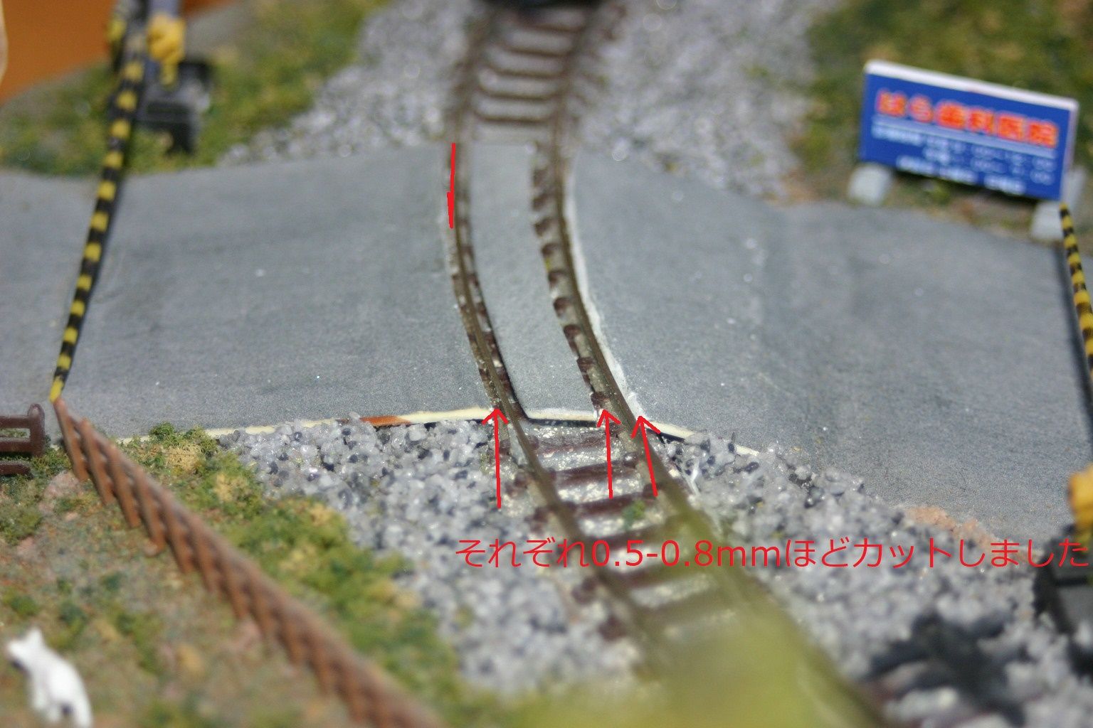 早速その干渉する道路部分をカッターナイフで0.5mmほどカットしてみました。