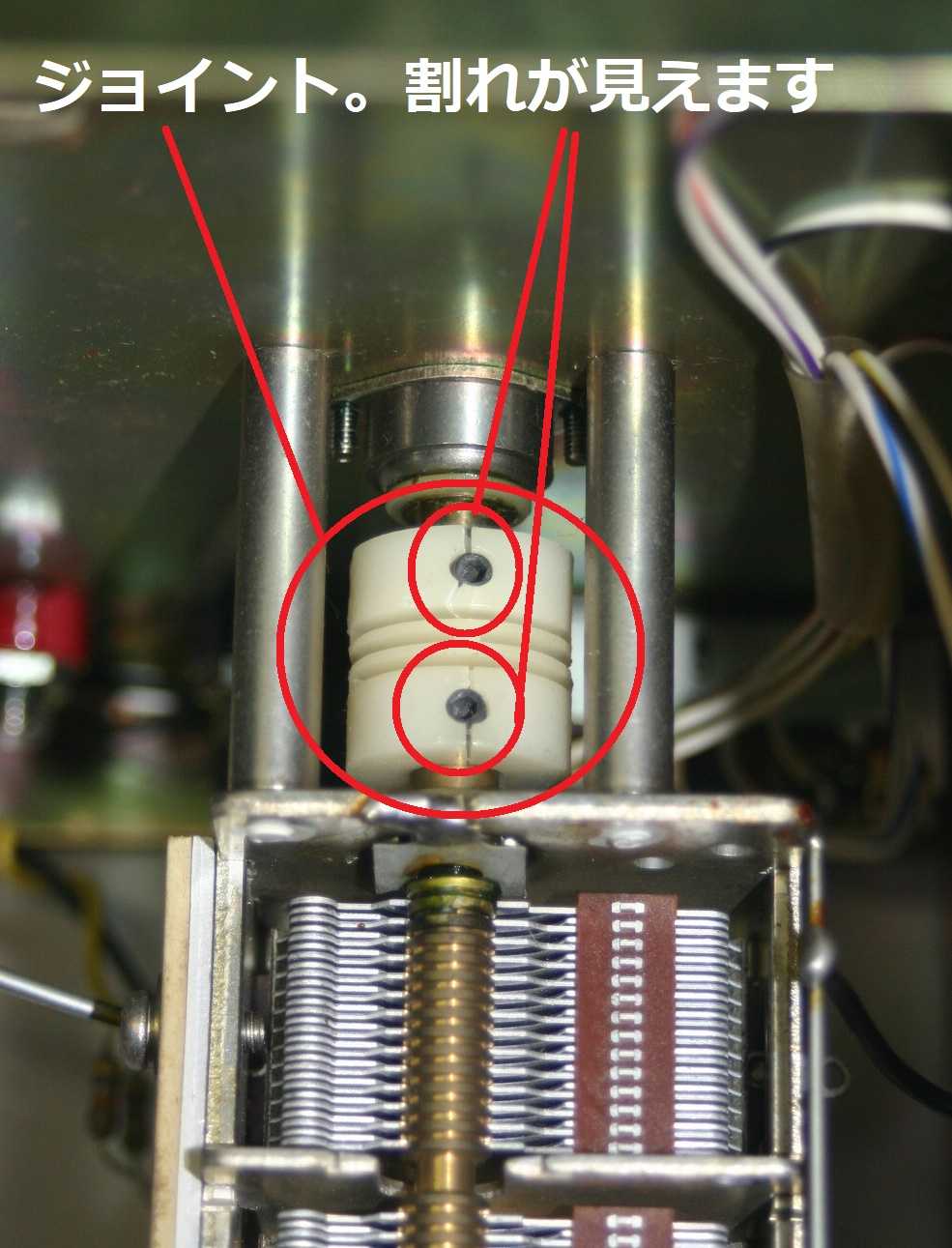 どうやら周波数ダイヤルのシャフトと2連バリコンを繋ぐジョイントに不具合があるようです。