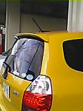 中古車のフィットにお客様依頼のリアゲートスポイラーを取付ました。ドリルで穴あけの作業が必要ですので緊張します。納車整備はすべて終わり、後は車庫証明が下りたら名義変更手続きをすると納車できます。