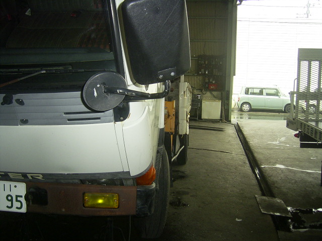 キャンターが水漏れしているとのことで入庫しました。ラジエータテスターで圧力をかけて漏れ個所を点検。ラジエータロワタンクから水が噴き出しています。ラジエータを取り外して、外注先へ漏れ止め修理の依頼。サーモスタッド、上下ホースも交換しました。ラジエータが修理からあがってきたので取付、水を入れ、漏れの点検。また、水が落ちてくる。再度点検。ウォータポンプからも漏れています。ファンブレード、シュラウドを取り外してウォーターポンプも交換しました。 キャンター(FE649C/E・FE659C/E) ウォーターポンプ