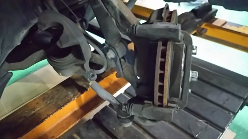 H7年式クラウンの車検整備。フロントのブレーキパッドが片減りしてます。キャリパーのスライドピンが固着してました。しかも、とても固くて抜くのにかなり苦労しました。(T_T)リヤパッドも摩耗してるので交換。 前回のタイミングベルト交換から10万km走ってますので、タイミングベルト&ウォータポンプも交換します。オイル漏れもあるのでカムとクランクのオイルシールも交換が必要のようです。エンジンの調子もいいのでまだまだ、乗れますよ!