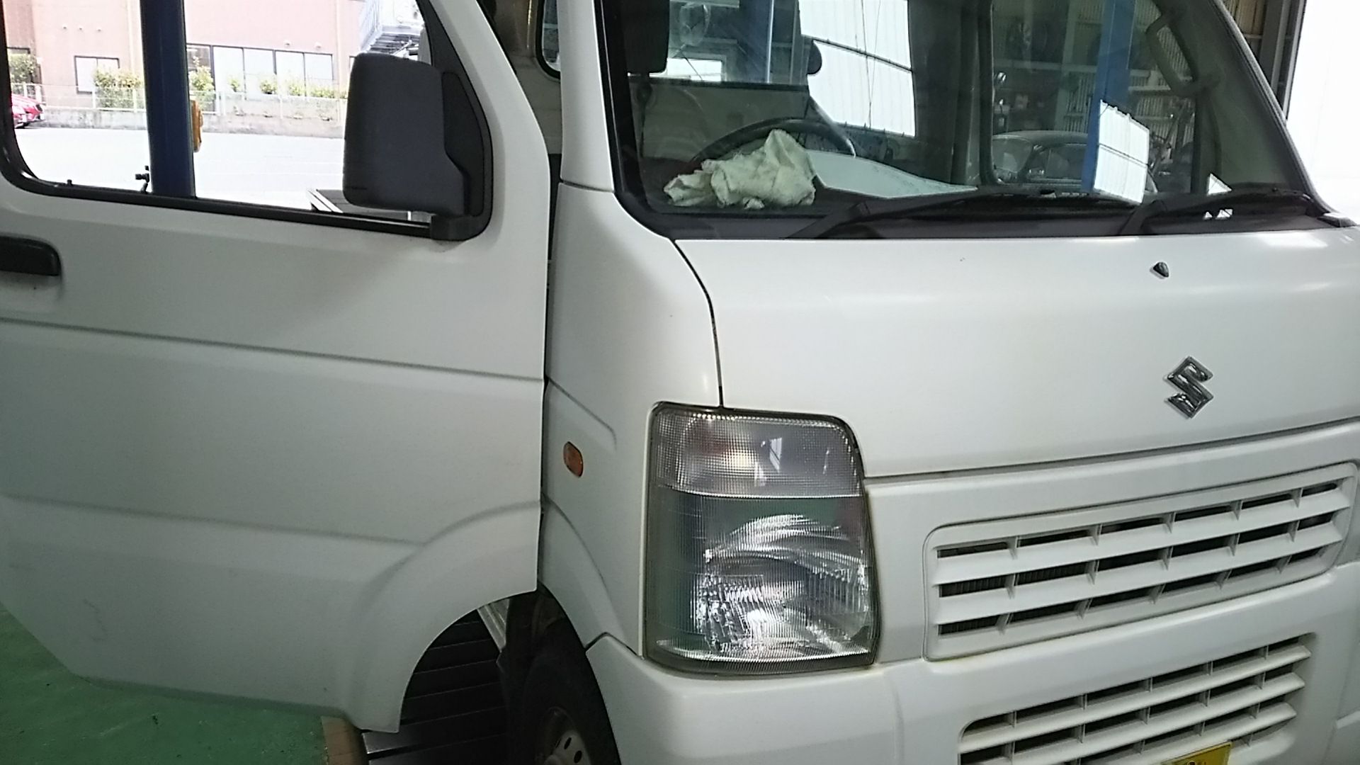 ドアのインナーハンドルが折れたキャリイ。内張外して、インナーハンドル交換。