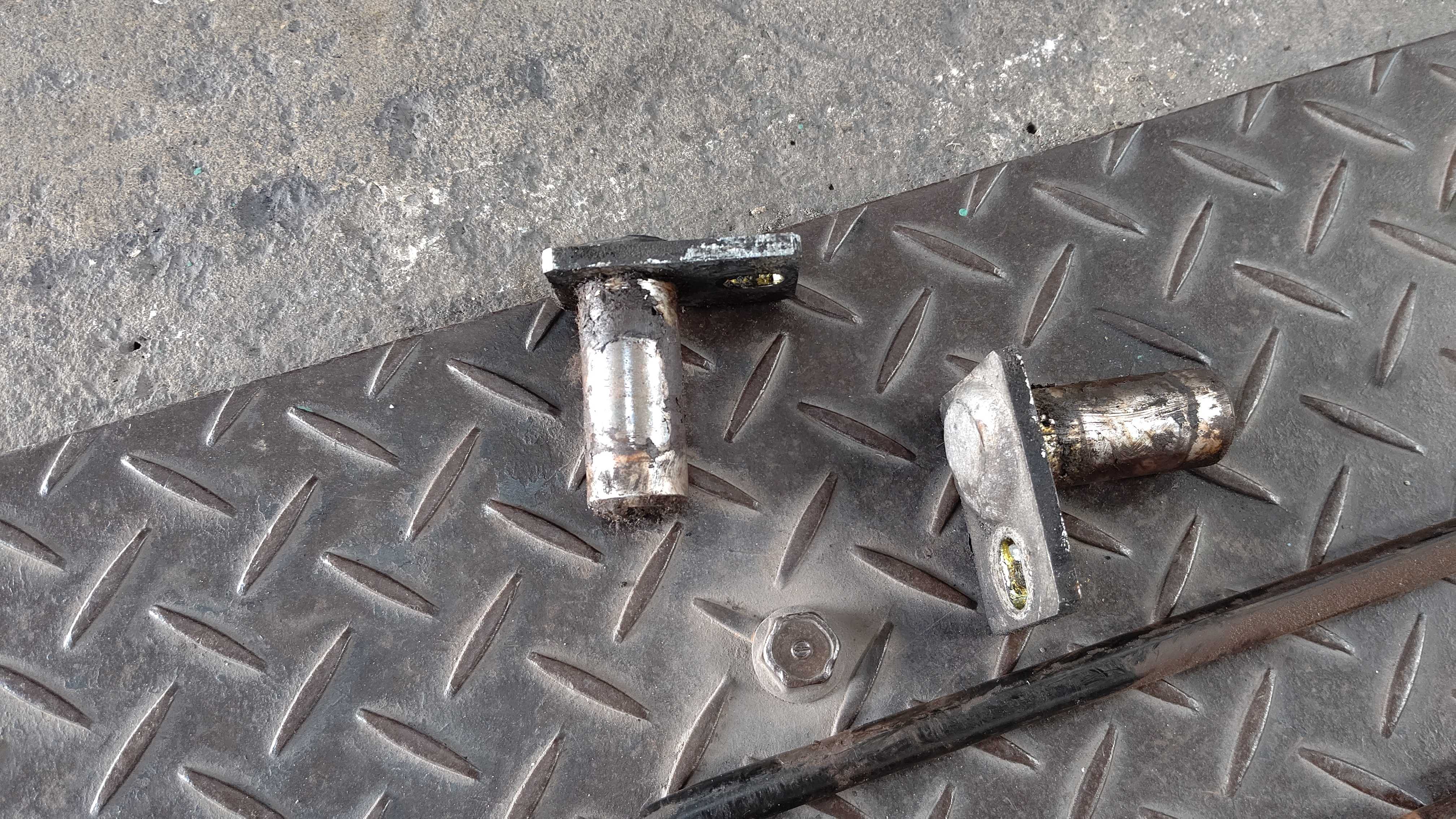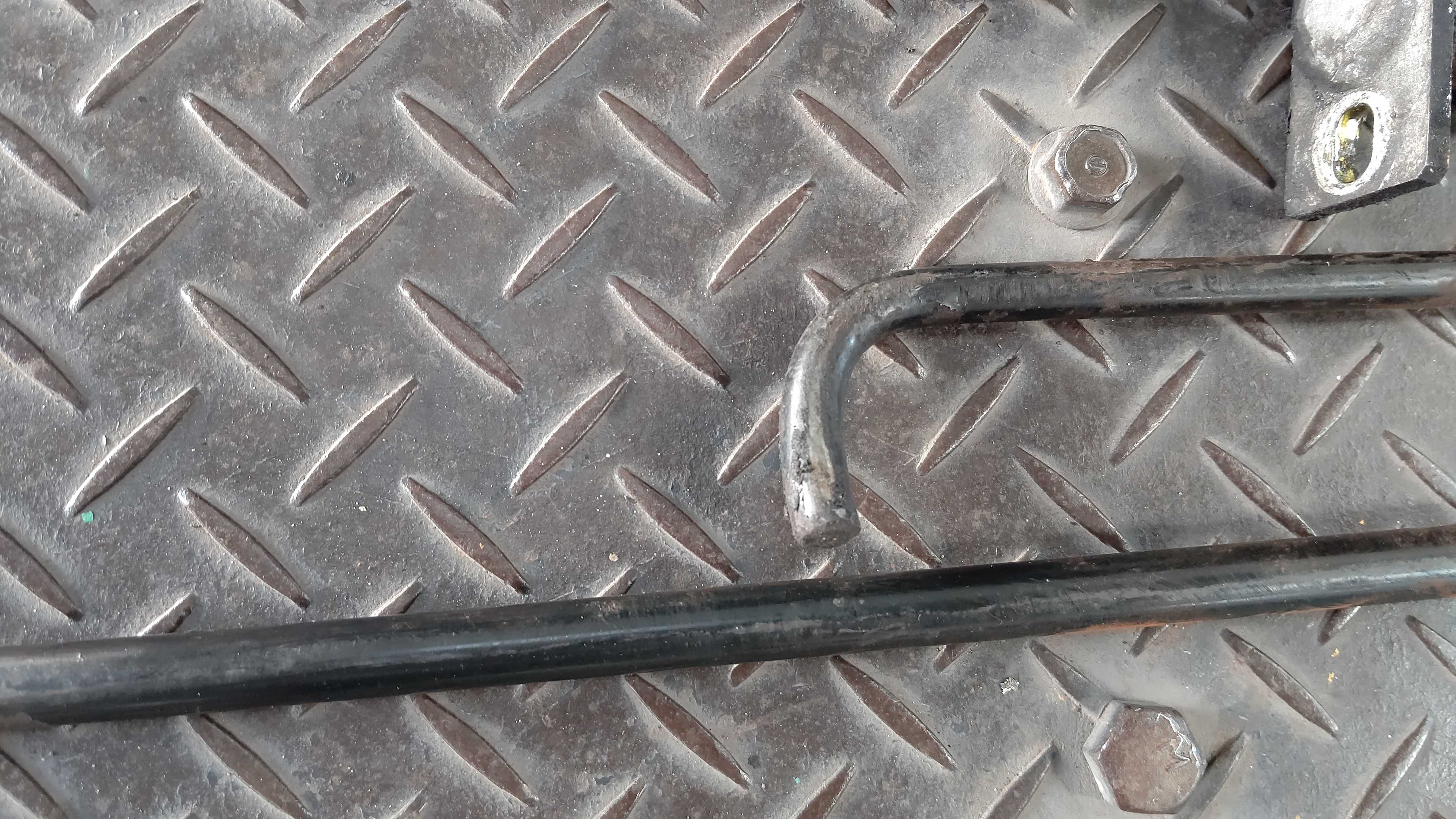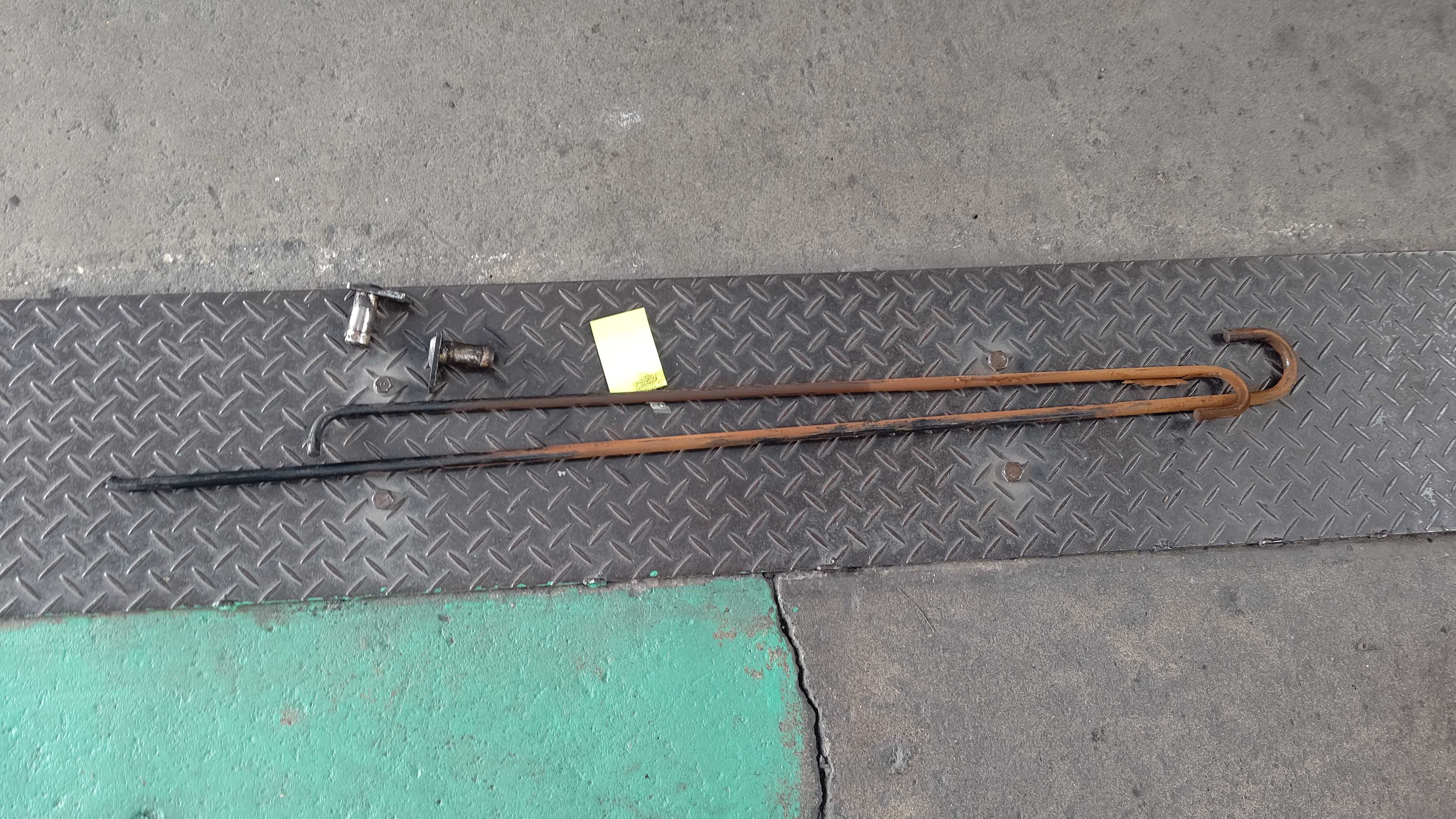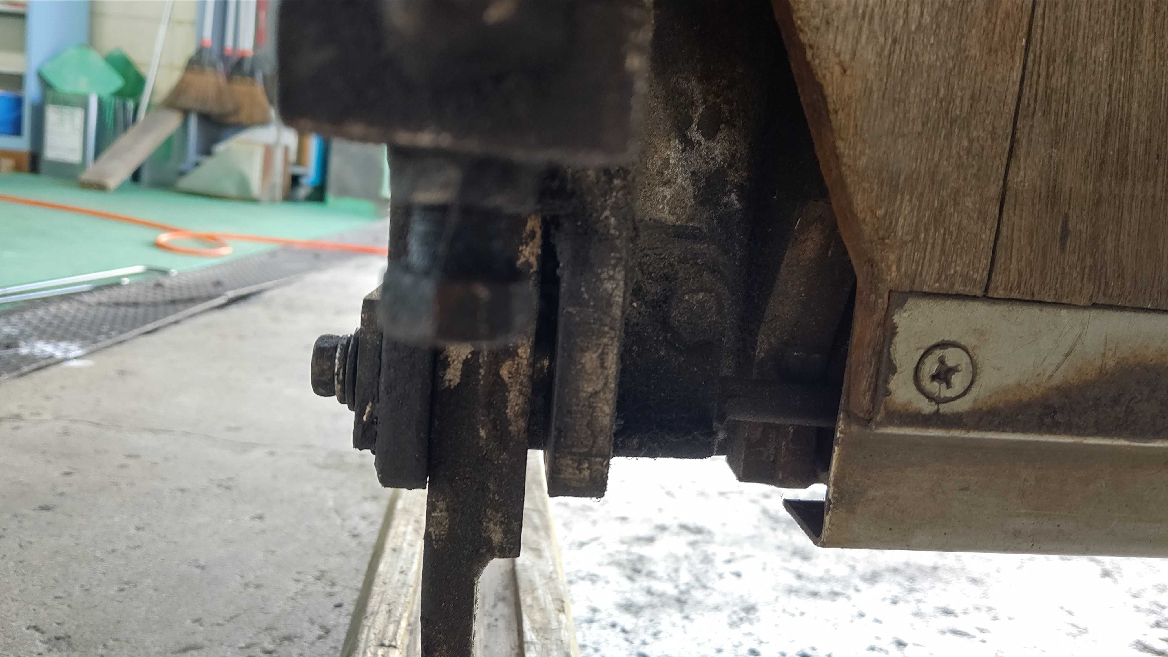 パワーゲートの左側トーションバー折れ。正常だと片手でもゲートを起こすことができるくらい軽いのですが、片方でも折れると両手でも結構重たいです。トーションバー両側、ガイドピンを交換します。パワーゲートを外してトーションバーを入れ替えます。