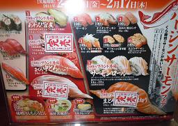 サーモン大好き!くら寿司でバージンサーモンフェアをやっているのを終了間近で知り平日の夜に食事に出かけるのを非常に嫌がる主人にお願いし連れて行ってもらった^^自転車でいける距離なら昼に行くけど近くにはないんだな・・・楽しみにして席につくが殆ど売り切れ!!!!!すっごく楽しみにしていたのに~特に食べたかったやつばかりがない!完売とシールが貼られているが実際はもっと売り切れせっかく連れてきてもらったので食べるが食べたくないものばかりなのであまり美味しくない近所の回転寿司のほうが美味しいわ~不満のまま帰宅美味しいお寿司が食べたひ