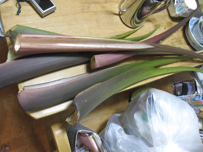 秋も深まってきました。畑の八つ頭の茎を採ってきました。皮を剥いて、ちょっと干してから食べます。環整骨院のホームページもご覧ください。