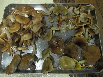 10月10日は、やはり晴れるんですねぇ。こんな良い天気にじっとしてはいられません。山できのこがよんでいる。オニナラか、チャナメか、はたまたクリタケモドキカ!昨日、「先生の年齢ならもう放射能は気にしなくても良いんじゃないの。」なんて言われたけど、まあそうかもしれないけど、なんとなく気持ち悪いなぁ。控えめに取ってこよう。きのこうどんと、グラタンと、スパゲッティの分くらいかな。控えめじゃ足りないか!