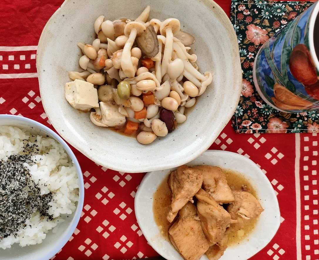 ● しめじ 豆腐 豆などの蒸煮(酢醤油で)