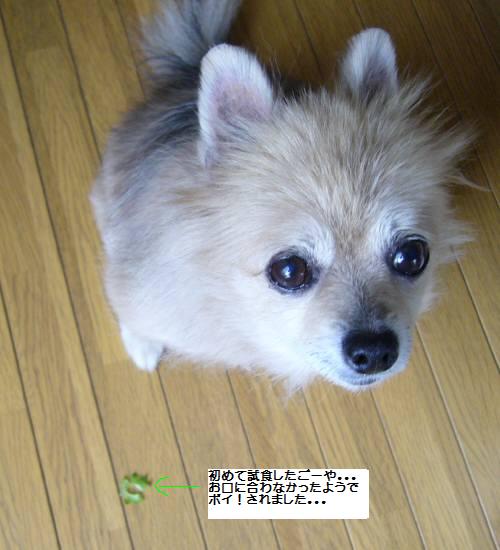 会社の人から、ゴーヤを貰ったのでセイラにも一口あげた。。。けど、食べてくれませんでした。キュウリは生で食べるのに、塩もみしたのをあげたから食べてくれなかったのかなぁ。。。食べてもらえなかったゴーヤがちと、可愛そう。