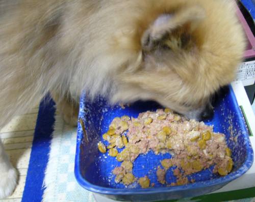 昨日届いた缶詰とふりかけとカリカリのドッグフードを混ぜまくりました。最初は、くんくんするだけでしたが、しばらくすると食べ始めました。嬉しいことに全部綺麗に食べてくれました。よかった!!