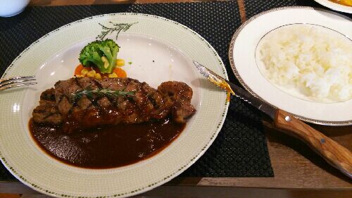 さて、家を出発したのは9時前 駐車場の混雑を氣にしていたので早く出発したかったのですが娘をこども園に送ってからの出発になりました 駐車場に着いたのは9時45分、すでに入園ゲートには列が 駐車場に車を停めてチケットブースでチケットを買わなくてはならないので、遠くの駐車場から妊婦の私を歩かせるのは危険だと旦那さんがチケットブースの近くで私を下ろしてもいいかと係員の人に聞いてくれました すると、障がい者用の駐車場を用意してくれました 次から次へと車が入って来るので、確かに途中で停めて私を下ろしているとスムーズに駐車出来なくなりますもんね… とても感謝です チケットブースでは待ち時間なく買えました 今回は旦那の職場の福利厚生で入園券10%オフ&500円引きチケットを利用しました 息子と旦那は入園+プール利用+乗り物フリーのチケット、私は入園のみのチケットを購入したので8100円でした そして園内で利用出来るプリペイド式のリストバンドに5000円チャージしました これは、アトラクションの妖怪ウォッチはフリーパスは使えず600円かかるのでいちいち財布を持ち歩くのも心配だし、飲食物持ち込み禁止なので水分補給の為に飲み物を旦那が買うために旦那に渡しました 入園の10時まで車の中で待ち、列が無くなってから入園しました まず最初に入園してすぐ右手にあるインフォメーションセンターにレンタルルームの鍵を借りに行きます 名前を言うだけで貸して頂けました 鍵は1つだけです 我が家は私が殆ど部屋に居るので1つで充分ですが、年齢の違う子を別々に見る場合などは2つあるといいのになぁって思いました 部屋に着き早速息子と旦那は水着に着替えてプールへレッツゴー 11時半に部屋に戻る約束をして 私はランチわ頂けるレストラン探し&飲み物調達へ レンタルルームの真下に色々なワゴンがあってラーメン、カレー、ポテト、たこ焼き、シェラスコ、唐揚げ、タコス等ありましたが せっかくなら入園しなきゃ入れないレストランにしようと思い、最近出来たステーキ屋さんにしました 平日ランチがあり、ステーキセット(1500円)、ハンバーグセット(1260円)だったのでテーマパーク価格にしては安いかと思います♪ ま、テーマパークに来たときはケチケチしないのが私の考え方です 年に何回も来れるわけじゃないので 11時 45分頃お店に行きました 水着のままでOKなので旦那と息子は水着のままですが、冷房対策にラッシュガードと巻き巻きタオルを持って行きました 濡れたままで利用できますが、びしょ濡れのままってね… 水分位は拭いて行かないと、待ち合い席の床も座席もびしょ濡れでした プール利用の方ばかりではないので氣になりました また、席は空いているのに待たされます 私と旦那はステーキセット ミニサラダ、ライス、スープが付きます ステーキはレア過ぎたので焼き直してもらいました ステーキはボリュームありました 写真、付け合わせのポテトガ息子に取られて無くなってます(笑) さらに妊娠中の私へ野菜を食べさせたい旦那さんはサラダバー(580円)を追加 よく冷えてて美味しかったのです♪ 息子はお子様ランチ(980円) ちいさなパン、サイコロステーキ、ハンバーグ、エビフライ、プリン、ジュースでした 少食な息子はパン、ハンバーグ半分、私のライス少し、ジュース、私と旦那の付け合わせのポテトしか食べませんでしたので ハンバーグをもらったら、ふわふわで美味しかったです♪ 私もハンバーグランチにすれば良かった!! ここでのお会計5300円 まずまずのお値段ですね 次に続く→