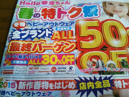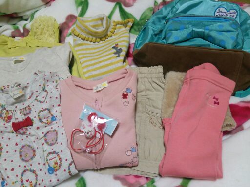 今日、つわりが少し引いたので やっとセールへ行って来ました と、言っても子ども服にはやはり興味がなく 娘を一時保育に入れるために必要なものを買い揃えに行ったついでにセールに寄った感じです 赤ちゃん本舗でこども園に必要なものを揃え、帰りにKPの取り扱いがあるセレクトさんへ 妊娠がわかる前にはセールの下見に行ってたのに、昨日からのセールにはまったく行く氣なく… 今日は娘のリュックを捜しに行き、店員さんに進められた通りにセール品を購入してきました(笑) 思考回路全くなし… で、購入品 ほとんど95なので来年用ですね… お昼寝用のパジャマをコンビミニ(50%OFF)とホットビで モンキーパンツもサイズアップ 御食事えぷろんも本当は手作りしたかったけれど、つわりで無理なので購入しました ごめんね、娘… そろそろ魔の手が近づいて来たので 横になります…