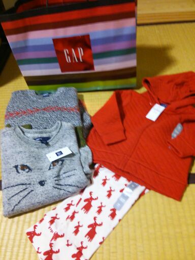 クーラクールのお洋服に続き GAPでもお買いものをしました 買う予定は無かったのですが 入り口で引かせてくれるくじ引きで 50%オフを引いてしまい~ 見ると欲しくなる クーラクールでは娘の服を買ったので、今度は息子のを買おうと思い はい、しっかり2人分購入です 息子はスキー用にニット 娘はクリスマス用のトナカイのレギンスと耳付きのパーカーです ばぁは(私の祖母)から 「今年中に着せるないほど服あるよね…どうするの?」 って言われて セール待ちしてるなんて言えない にほんブログ村