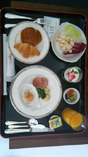 昨夜は3時間おきにナースステーションから呼んでもらって新生児室へ授乳に行かせて頂きました 新生児室のベビーちゃんたちと同じ時間に私が行くので、ベビーちゃんたちにミルクを飲ませながら授乳指導もしてくれた看護師さんに感謝しています 赤ちゃんたち、本当にミルクの時間になると一斉に泣き始めるんですね!! 一人一人ミルクを飲ませる看護師さん達大変そうだけど、赤ちゃんに声かけしながらミルクをあげてて、保育器にいるうちのベビーも大切にしてもらえてるんだなぁって思いながら授乳していました 朝の回診の時に今日午後から赤ちゃんがお部屋に来ることが出来るかもしれないとの事で、ルンルン気分に だってね、退院したら可愛い二人の子ども達が待ってるから、ベビーと二人きりの時間を楽しめるのはは入院中だけだからね と、いっても今日は午後からエステとシャンプーの予定が入ってます エステもシャンプーも楽しみにしてたので、午前中にシャワーをすませてエステとジャンプーに行っている間はベビーを新生児室で預かって頂きました 綺麗になってくるから待っててね~ その後授乳指導で、授乳前と後の体重を計ってみると… な、なんと 10ミリ… チーン 吸い付きが良かった分、もっと飲んでるかと思いきや10ミリか… ま、ミルクを足して気長に飲ませましょう ミルクが出てくると目が輝くベビーちゃん な、何だかね ママ切ないよ… さて、本日から食事は4階のレストランで頂きます 朝 この日は中華でした 朝から中華風の食事が出来るなんて 出汁の効いた中華粥に3種類の薬味を混ぜて頂きました 真似したいけど、どうやって真似するか… 大好きなエビ餃子も付いて満足~ 一緒の席になったママさん達と、いつ産まれたかとか出産の事とか、上の子の事とか色々話しなから食べました 前回娘を産んだときは初産ママが多かったけど、今回は経産婦さんが結構いました さて昼御飯 牛ヒレ肉の何とかソース サラダ、トマトの上に揚げた白身魚(?)と、玉ねぎなどのマリネが乗ったもの、冷製コーンポタージュ、グレープのジュレ すごい豪華なランチです しばらくはベビーのお世話でランチに行けないもんね おやつ ガドーショコラです 甘いものは乳腺炎になるっていうけど、このくらいの量と甘さならOKなのね 夕食 天然ぶりの竜田あげ 冬瓜の煮物 味噌のような梅の味もするような、和え物←美味しいけど真似出来ない味 変わったカボチャの煮物 繊維に沿って裂けるカボチャ こんなの手に入らないし!! ぶりは肉厚でした レストランに入ると 「いらっしゃいませ!!」 と出迎えて頂き、和食だと和食の格好の板前さんがメニューの説明をして下さいます 洋食だとシェフがいます 入院中だけど、パジャマのままだけど外食気分 今日は、仕事終わった旦那さんが泊まりに来てくれます ベビーちゃんもお部屋に来たしちょうどいいです♪ 小石マタニティクリニックは付き添いのベットも借りられます 差額1000円だったかな?そんなに高くないです 後産が痛いので、ベビーちゃんが夜泣きしちゃった時などに旦那さんが居ると助かりますよ ただ、門限は9時なのでそれまでに入らないといけません その時間を過ぎると出産の人以外は出入り出来ないので夕食などは済ませてくるか、買い込んで来た方がいいです 21時までならルームサービスも利用出来ます おにぎりはお気に入りで、遊びに来た息子もオーダーしました! 鮭と梅のおにぎり、お米が美味しいのか旦那さんもお気に入りです さて、ベビーちゃんが誕生して最初の親子3人での就寝です が… 事件は起こりました(笑) 3人目 出産 入院2日目 夜の事件?!へ続く!!