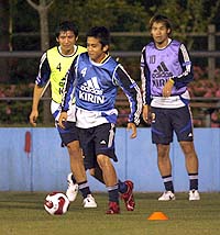 強い、速い、うまい。“三者三様”の新3バックが披露される。紅白戦形式の練習でオシム監督から左DFに指名された中田浩は中沢、坪井とトリオ結成。1日、モンテネグロ戦での先発が濃厚になった。「飛行機に乗って帰ってきて、正直多少疲れている。最初は(移動を)考慮するといわれていたんですけどね。」この日午後2時に帰国。1万300キロの長旅を終えた5時間後の練習にフル参加。早速の“オシム流”に苦笑いを浮かべた中田浩だが、「1日のことを考えると、きょうやっておくのは大事。」と、強行出場への強い気持ちも示した。「今いるメンバーは1年間、オシム監督のサッカーをしている。その中でも自分を出せればレギュラーを取れると思っている。」と中田浩。CB、左サイド、ボランチをこなすポリバレント(多様性)は監督好み。強さの中沢、速さの坪井、うまさの中田浩。“新3バック”が、オシム・ジャパンを次なるレベルに引き上げる。・・・昨年からスタートしたオシムジャパンで、一番手薄だったDFに、中田浩二が加わり、グ、グ、グッと引き締まった感がある。坪井だけが、ジーコジャパンからの継続。中澤は、途中からの参加。そして、中田浩二は、最後の参加。これで、オシムジャパンのDFのレギュラー争いが激化すれば、いうことなし。(でも、冷静に考えれば、この3人のDFは、ドイツW杯メンバー。進歩がないということか。)がんばれ、オシムジャパンのDF!!・・・