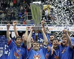 後半ロスタイム。同僚DFマイストロビッチのPKが決まると、中田浩は飛び跳ねてガッツポーズ。「欧州でメダルを取れるとは思っていなかった。」鹿島時代は何度もあったが、欧州移籍後は3シーズン目で初のタイトルの喜びに浸った。マルセイユから昨季途中にバーゼルに加入し、ボランチやセンターバックなど数々のポジションをこなす万能ぶり。今季最終戦の大一番では左サイドバックでフル出場し、相手のプレーを読んだインターセプトやクリアなどで無失点に貢献した。「満足感がある。代表では、ここでやってきたことを出したい。」と中田浩。その成長を、日本で示すときが迫った。・・・「世界の中田でない中田です。」という中田浩二の自虐的ギャグは、もうおさらばしてほしい。バーゼルの中田浩二が、リーグ戦の優勝は逃したが、カップ戦で見事に優勝を飾った。中田浩二は、バーゼルでレギュラーを確保し、チームに貢献した。その勢いで日本代表に合流し、頑張ってほしい。ジーコジャパン以来、初の代表召集で、いろいろ戸惑いはあるだろうが、スイスリーグで培った力を見せて欲しい。がんばれ、中田浩二!!・・・