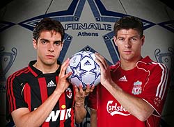 サッカーの欧州チャンピオンズリーグ決勝で23日(日本時間24日未明)に対戦するACミランとリバプールが22日、アテネの試合会場で練習前に記者会見し、優勝への強い意欲を示した。両チームは2季前の決勝でも対戦。3-3からのPK戦の末に優勝したリバプールのベニテス監督は「あの試合は歴史に残る名勝負だが、今回はもっと厳しい戦いにしたい。ゴールは少なくなると思う。」と話した。先発の11人は、けが人の回復具合を見極めて試合直前に決めるという。ミランのアンチェロッティ監督は布陣を既に固めたと明言した。「チームは今季最高の状態にある。生命線であるボール支配率を高く保ち、主導権を握りたい。」と自信を漂わせた。・・・明日の朝、ついに、CLの決勝戦。一昨年の決勝の再現対決。最後に笑うのは、ミランなのか、リバプールなのか、結果は、神のみぞ知る!!だ。どのような結果がまっていようとすばらしいゲームを期待したい。・・・