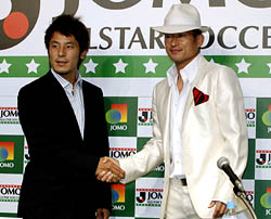 Jリーグは23日、JOMOオールスターの出場選手を発表し、開催地の人気選手で西軍のMF藤本(清水)が35万8659票で最多得票選手として選出された。J1の日本人最年長得点記録を更新した40歳のFW三浦(横浜FC)が東軍の最多得票で選ばれ、西軍のGK川口(磐田)とともに大会最多に並ぶ9度目の出場となった。出場選手は東西各16人(サポーター投票11人、リーグ推薦5人)。MF中村(川崎)ら12人は初出場となった。東軍は関塚(川崎)西軍が長谷川(清水)両監督がそれぞれ率いる。この日選ばれたMF水野(千葉)らU-22(22歳以下)日本代表組は、同時期に中国で行われる4カ国大会には出場しない見通し。・・・オールスターメンバーが発表された。僕的には、オールスターゲームは、お祭りなので、興味と関心は、いまいち。オールスターゲームをする是非を考えた方がいいとさえ思っている。しかし、記者発表にあらわれたキャプテンKAZUのいでたちは、いったい何なんだ!!と、思わせてくれた。以前から派手好き、目立ちたり屋だから、そんなに驚きはしないが。まあ、このKAZUの自己演出も、自分の頑張りへのご褒美かな、と、解釈した。一番気になったことは、MFの中で小野伸二が、最下位意当選だったということだ。一抹の寂しさを感じずにはいられなかった。・・・