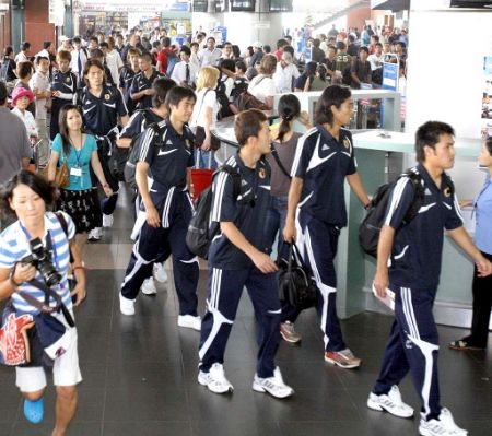 アジア杯準決勝でサウジアラビアに敗れ、3位決定戦に回ったオシム・ジャパンに26日、想像以上の“死のロード”が立ちはだかった。サウジ戦から一夜明け、ハノイのノイバイ国際空港からインドネシアに出発。しかし試合会場のパレンバンへの移動便が、同日夜になっても確定できていないことが分かった。ハノイからパレンバンへは、最低でも2度の乗り継ぎが必要なため、同日昼にハノイを出発。マレーシア・クアラルンプール経由でインドネシア・ジャカルタに。同地のスカルノ・ハッタ空港近くのホテルで一泊し、翌早朝に試合地・パレンバンに向かう予定だった。これだけでも過酷な行程だが、アジア・サッカー連盟の手配ミスで、一度確保していた早朝便がキャンセル扱いに。同便は1日6便あるが、最悪ジャカルタで練習後、移動を強いられる可能性も出てきた。初の会場での公式練習さえ微妙な“ぶっつけ本番”の危機。ハノイで5試合を戦い移動面で恵まれていたが、最後に4カ国共催の“洗礼”を受けた。一方韓国は同日、クアラルンプールでの練習後、直行便でパレンバンに到着。格差は大きい。「乗り継ぎ? ミーティングだね。選手同士で話したい。」MF中村俊輔は、長時間移動を無駄にしない構えを見せていたが、過酷さは想像を超えていた。宿命の日韓戦へ日本への“逆風”は、強い。・・・やれやれ、3位決定戦の地に辿り着くのに、1泊しなくてはいけないなんて。これが、4カ国共催の洗礼なのか。飛行機の手配もうまくいっていないようで、どうなることやら。選手のコンディションが心配だが。敗戦と移動のW精神&肉体負担は、日本代表に影響大だ。それでも、がんばれ、日本!!・・・