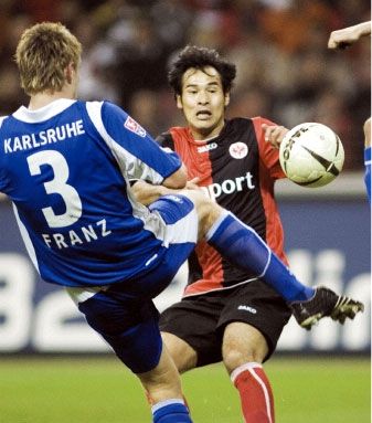 高原直泰と稲本潤一が所属するフランクフルトはカールスルーエに0―1で敗れた。高原と稲本はともに先発したが無得点で途中交代した。守備的MFの稲本は右脚付け根を痛めて前半終了で退き、左の攻撃的MFを務めた高原は後半21分に交代した。フランクフルトは今季ホーム初黒星で3勝2分け2敗。・・・高原がやっと、怪我から復帰して、稲本と同時先発を果たしたと思ったら、今度は、稲本が負傷交代。う~ん、なかなかうまくいかないものだ。稲本の怪我がたいしたことがなければいいが。次戦で、二人の同時ブレイクを期待したい!!・・・