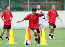 アウエーのアジアCL・全北現代戦に向け、24日に出発する浦和。日本代表FW田中達は「疲れ? そんなことは言っていられない。(先発は)監督が決めることで、監督に信頼を得られるようなプレーをするだけ。」オジェック監督に疲労を考慮されて前日23日の横浜M戦はベンチスタート。全北現代戦でのスタメン復帰を狙う。「全北戦は点を取られなければ勝てる。しっかり守ってカウンターから得点できればいい。」0-0でも準決勝に進める一戦だが自らがゴールを決めて4強に導く。・・・23日に、非公開練習をしたレッズ。今日、韓国へ出発。何が何でも準決勝進出を決めて帰ってきてほしい。田中達也の決意が、レッズ全員の決意だ。がんばれ、レッズ!!・・・