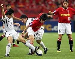 真っ赤に染まったスタンドも、度肝を抜かれる先制攻撃だった。前年覇者との死闘を覚悟していた試合開始直後の前半4分。田中達の右クロスをFW永井が落とすと、長谷部のミドル弾がゴール左隅に突き刺さった。「シュートを打たなきゃ始まらない。フリーだったので。いい形で入ってよかったです。」と長谷部。さらに浦和の猛攻は続く。後半14分には、田中達とDF闘莉王のワンツーで、最後は田中達がゴール右隅に流し追加点。「チーム全体でいいサッカーができていた。」と田中達。自慢の堅守も健在で、浦和の強さが際立っていたが…。後半ロスタイムでの失点で、勝利を手放しで喜ぶことはできなくなってしまった。ホーム&アウエーの2試合合計で争い、並べばアウエーゴールが優先されるACL。26日のアウエー戦で0-1敗戦となれば浦和は敗退。1-2敗戦でも延長、PK戦となる。「こっちのペースでやっていたのに、最後に失点してしまった。最後の最後までやらないと意味がない。」と闘莉王が先勝にも悔しさをにじませれば、決勝ゴールの達也も「もう1、2点は決めたかった。もっと簡単に勝てたはず。チームに迷惑をかけた。次の試合への課題です。」と笑顔はない。それでもアジア制覇へ一歩前進したのは事実。日本のクラブが決勝トーナメントで勝利したのも、もちろん初めて。「また気を引き締められる。いい意味でとらえたい。」と、先制点の長谷部は前を向いた。敵地で引き分け以上で準決勝進出。それでも、浦和は“王道”を進むため、積極的に勝利を狙う。・・・う~ん、やっぱりラスト1失点の余波は大きいようだ。選手のコメントにも厳しいものが滲んでいる。選手も、監督も、サポも笑顔なしだ。アウェーで、引き分け以上というのは、大きな重石になりそうだ。しかし、下を向くことは許されない。終わったことを引きずることは許されない。前を向くしかない。がんばれ、レッズ!!・・・