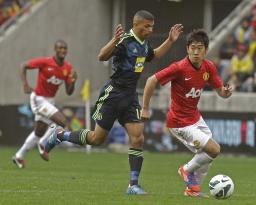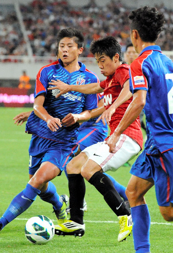 マンチェスター・ユナイテッドに加入した日本代表MF香川真司が、移籍初ゴールを決め、1-0の勝利をもたらした。25日、上海で中国スーパーリーグ・上海申花との親善試合にトップ下で先発出場。後半23分、左サイドをドリブル突破したベベのクロスを中央で受けると、トラップミスでボールが大きく跳ねながらも、冷静に右足を振り抜き、ゴールネットに突き刺した。▽香川の話 結果的にゴールが取れてよかった。もっともっと積み重ねていかなければならないところもある。もっと厳しい戦いが始まる。チームとしても、個人としてもコンディションを上げ、レベルアップしたい。・・・やった~!!ついに、マンUで初GOAL!!それも、決勝点とは、存在感アピールになったはず。べべのクロスをトラップミスしても、落ち着いて胸で落とし、ダイレクトシュート。相手DFにあたりコースもかわったが・・・やはり、香川のGOALは、香川らしさがあった。香川、しっかりもっているぞ!!・・・