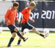 なでしこジャパンの佐々木監督と宮間は公式会見に臨んだ。女子サッカーが全競技のトップを切って始まることを踏まえ、指揮官は「オールジャパンのスタートをなでしこが切る。しっかり勝って勝ち点3を取りたい。」とあらためてカナダ戦の必勝を宣言した。 最近の世界大会の初戦は、08年北京五輪が引き分け、昨夏のW杯が辛勝。初戦の難しさを認識した上で「ここ数年いろんな経験をしている。一人一人が解消してくれると思う。」と選手に全幅の信頼を寄せた。宮間は「金メダルを獲ることを目標にやってきた。このチームでできる最後の機会。厳しい戦いをみんなで楽しみたい。」と意気込んだ。・・・いよいよ、ロンドン五輪が始まる。明日は、なでしこが、カナダ戦。厳しい戦いになるだろうが・・・なでしこらしいサッカーと気迫をみせてほしい。そして、何が何でも勝ち点3をGET!!初戦の大切さは、監督も、選手も、よくわかっているはず・・・内容より結果が全て。キャプテン宮間、がんばれ!!・・・