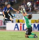 G大阪が完勝した。前半38分にレアンドロの得点で先制。同43分には遠藤がPKを決めて2―0で折り返した。後半は今野、佐藤らで3点追加。名古屋は前半にPKを与えた場面で増川が退場処分となり、後半は守備陣が崩壊した。 ・・・低迷G大阪が、名古屋を相手に、5得点とは、びっくり。今までの鬱憤を晴らすかのようなゴールラッシュ&完封。これで、のれるかな。いや、これでのらないとのるときはもうないぞ。・・・