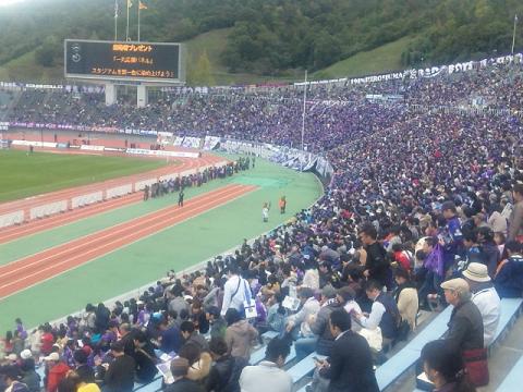 雨上がりの広島は、曇り空に時々お日様が。でも、風は、冷たかったな。ホームベガルタ仙台戦は、17184人と、少し多め、やはり、優勝争い効果あり。前半のサンフレは、いつもよりアグレッシブな攻撃を・・・しかし、シュートが枠にいかない。スタジアムは、悲鳴と落胆の繰り返し。後半は、いつものサンフレのグダグダサッカーに、得点の匂い無し。84分、やっと、やっと、石原が、仙台のゴールを破った!!1-0で、サンフレ勝利!!優勝争いに踏み止まった。もう、負けられない。負けた瞬間、優勝の可能性ほぼ無し。真の強さが問われる今後の戦い。がんばれ、サンフレッチェ広島!!P.S.(今日のびっくり)・前半、青山の左サイドから右サイドのミキッチへのノールックロングパスは、圧巻!!・後半、高萩のハーフラインを少し越えた辺りからのロングシュートは、GK正面も、はじくのが、やっとのど迫力!!