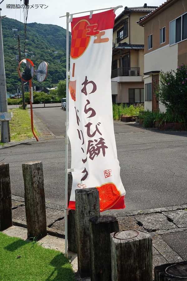 ●どらやき かたすげ片瀬白田駅の付近に、昨年10月に開店した和菓子屋さんがあるというので探してみたが見当たらずネットを見てようやく行き着くことができた。道沿いではなく住宅地の中だった。「かたすげ」という店で素敵なノレンを潜ると商品が並ぶショーケースがある。お勧めはどら焼きと鈴の形をしたモナカのようだ。どら焼きは1個350円。片菅神社の鈴をイメージしている「鈴香」は1個220円。わらび餅ドリンクは580円。和菓子職人の奥様が一人で製造しているので数が限られているようだ。地場産品のニューサマーオレンジジャム。店名の「かたすげ」とは片瀬地区にある「片菅神社」から名付けられた。この神社は三宅島にある片菅神社の分霊したとされ徳治2年(1307年)と古い神社で「片瀬」の地名の由来となっている。●お店情報 どらやき KATASUGE静岡県賀茂郡東伊豆町片瀬572-12☎ 0557-27-9206営業時間:10:00~17:00定休日:水曜日