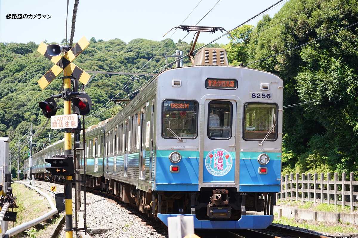 ●陽炎久々に「線路脇のカメラマン」に出かけた。いつもの所で列車を正面がちに狙ってみる。今の時期になると暑さによってカゲロウのシーンが撮れるのだが、まだ時間が早いので温度が上がっていないようだ。上りの8000系は「熱海駅100周年」のヘッドマークを付けている。伊豆高原で上下列車交換して来たのはスッピンの8000系。257系踊り子やきんめ電車が通過すると、最後の狙いは3000系アロハ電車だ。陽炎が出始めた。次は温度が最高に上がった午後に狙ってみよう。