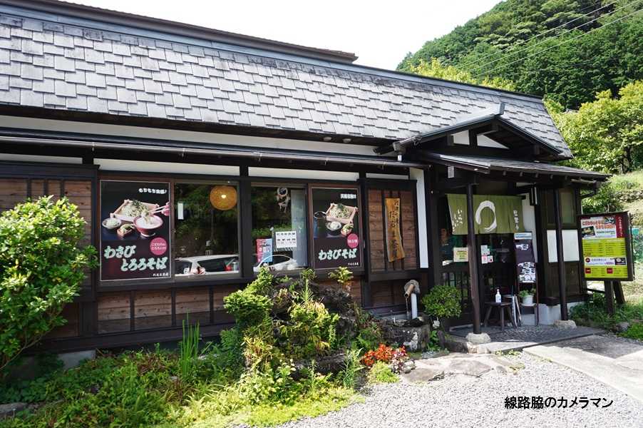 ●七滝「だるま茶屋」ようやく中部・関東地区も梅雨明けとなり本格的な夏がやってきた。朝から30℃超えの気温となっているので涼を求めて天城山の河津七滝に行ってみる。去年も来たような気がする。下界より3度くらいは低いのだろうと期待してゆく。その前に腹ごしらえしなくちゃと思い蕎麦屋さんに入る。今回は、駐車場内にある「だるま茶屋」にしてみる。ここの売りは「わさびそば」や「わさび丼」らしいので、ワサビそばととろろそばをオーダーする。小さいが生のわさびが付いているので自分ですってみる。ソバにワサビを練り込んでいるのでヒスイ色。最後には蕎麦湯で締める。●お店情報 ソバ・うどん だるま茶屋静岡県賀茂郡河津町梨本380-11☎ 0558-36-8937営業時間:12:00~15:00不定休