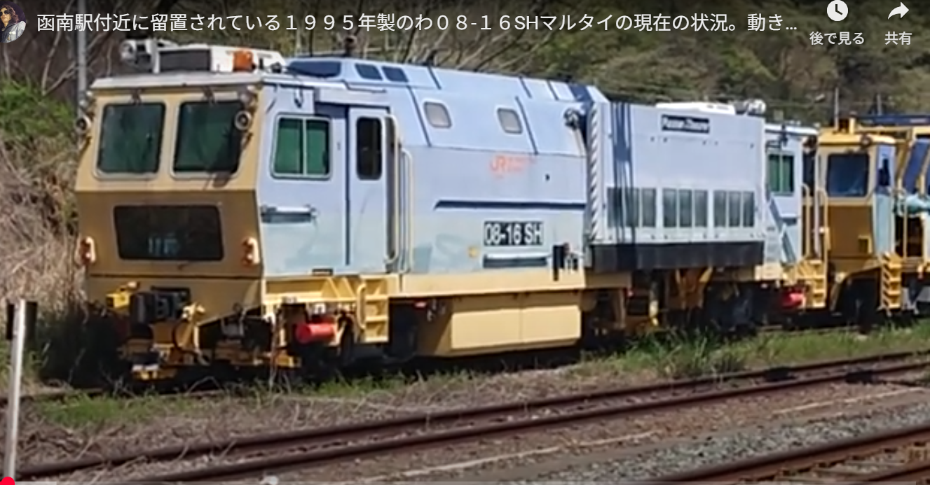 ●伊豆急にマルタイ函南駅に留置されていた1995年の08₋16SHマルチプルタイタンパー通称マルタイが7月1日の甲種輸送で沼津〜川崎貨物〜伊東まで運転された。写真はネットより借用9862列車がEF210₋361+マルタイで下りはEF65-2083が牽引した。伊東から伊豆高原までは8000系で輸送したのだろう。このマルタイはJR東海が2007年3月に導入されたオーストリアプラッサー&トイラー社製の保線用重機で、丹那トンネルを中心に使用されたが現在は09型に変更されている。この爪で砂利の突き固めを行うので100人力だ。JR東海より譲渡された伊豆高原駅構内の08型来宮駅に留置の09型